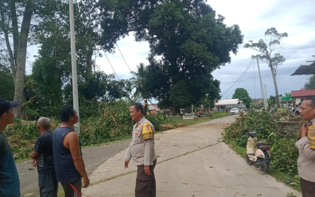 Aksi Sosial untuk Masyarakat, Personel Polsek Tanjung Batu polres Ogan Ilir Sigap Evakuasi Pohon Tumbang