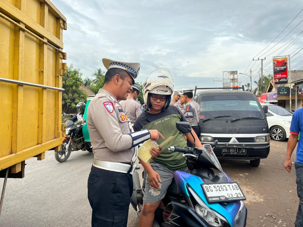 Tak hanya itu, personel turut melakukan penyampaian pesan keselamatan melalui papan bicara, serta memberikan edukasi langsung kepada para pengendara sepeda motor. Edukasi ini mencakup imbauan penggunaan helm SNI, larangan menggunakan ponsel saat berkendara, hingga penegasan pentingnya mematuhi batas kecepatan demi mencegah kecelakaan.