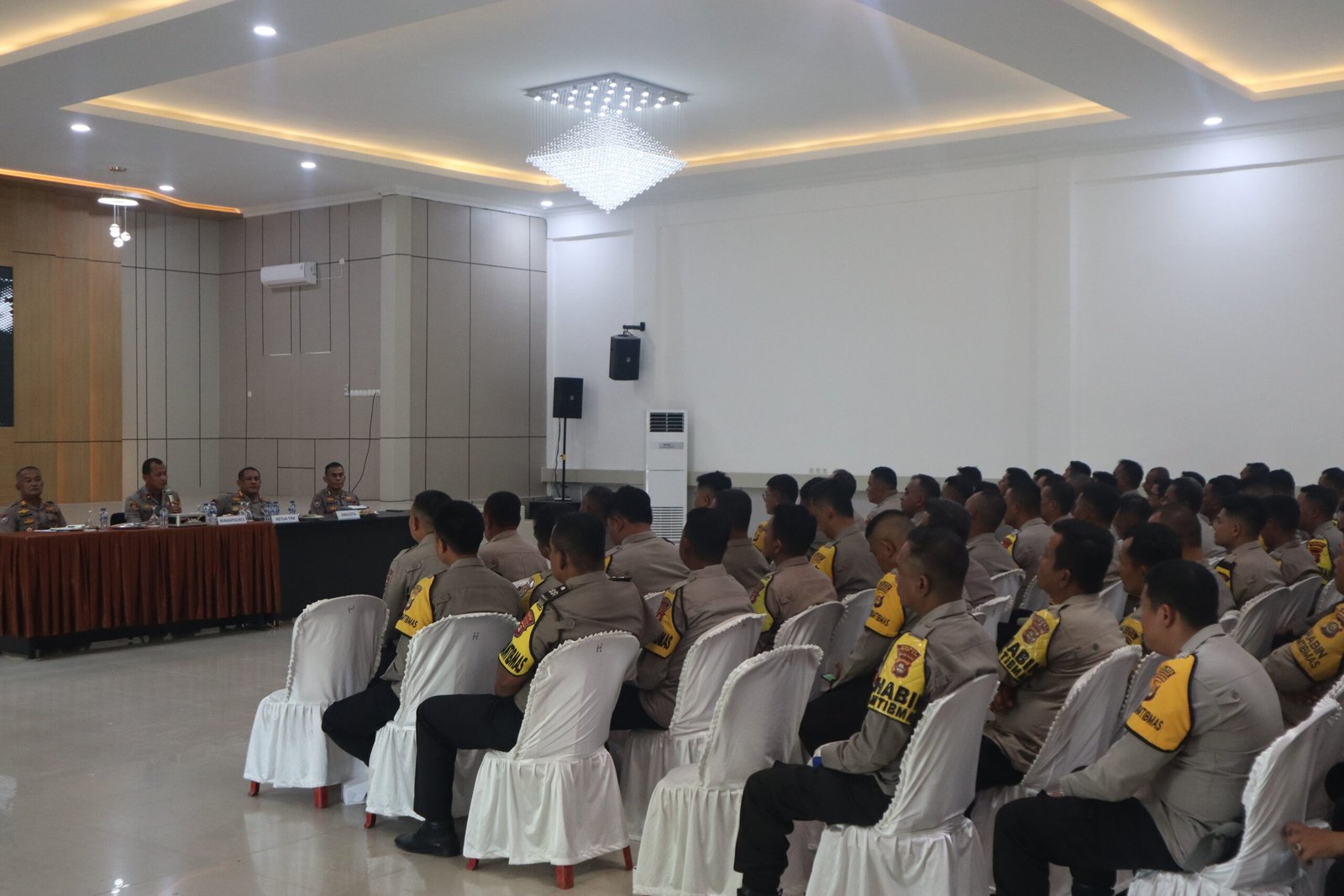 Rangkaian kegiatan meliputi pembukaan, menyanyikan lagu Indonesia Raya, doa, sambutan, paparan dari Tim Korbinmas Baharkam Polri, sesi tanya jawab hingga penutup.