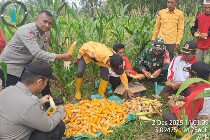 Ogan Ilir – Polres Ogan Ilir melalui Polsek Pemulutan turut mendukung program ketahanan pangan pemerintah dengan melaksanakan kegiatan panen jagung di Desa Pelabuhan Dalam, Kecamatan Pemulutan, Kabupaten Ogan Ilir, pada Selasa (02/12/2025) sekitar pukul 10.00 WIB.
