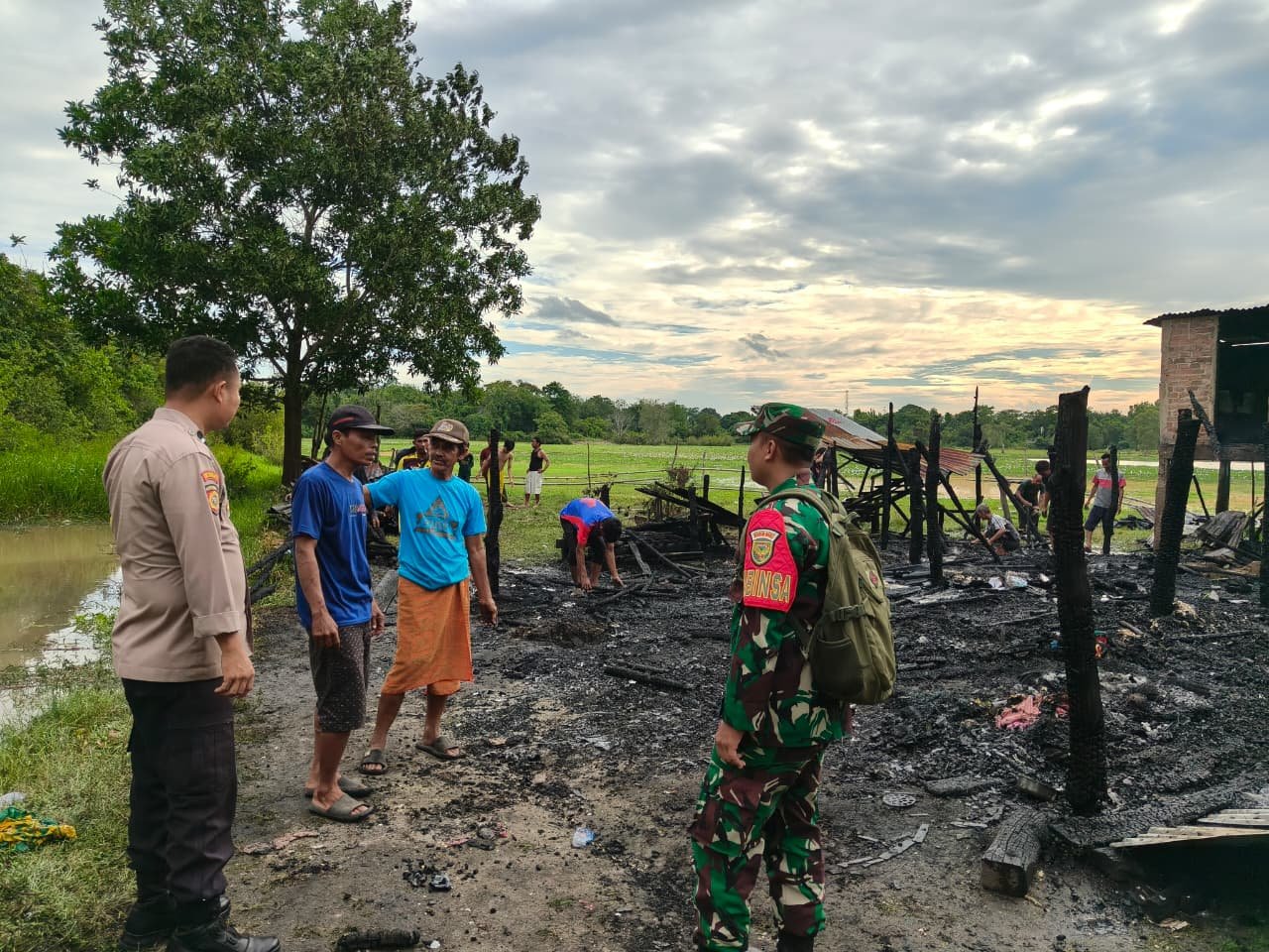 Personel Polsek Indralaya yang menerima laporan segera mendatangi lokasi kejadian, melakukan pengamanan di sekitar tempat kejadian perkara, serta membantu proses pemadaman api bersama petugas Pemadam Kebakaran Kabupaten Ogan Ilir dan masyarakat. Api berhasil dipadamkan sekitar pukul 16.15 WIB.