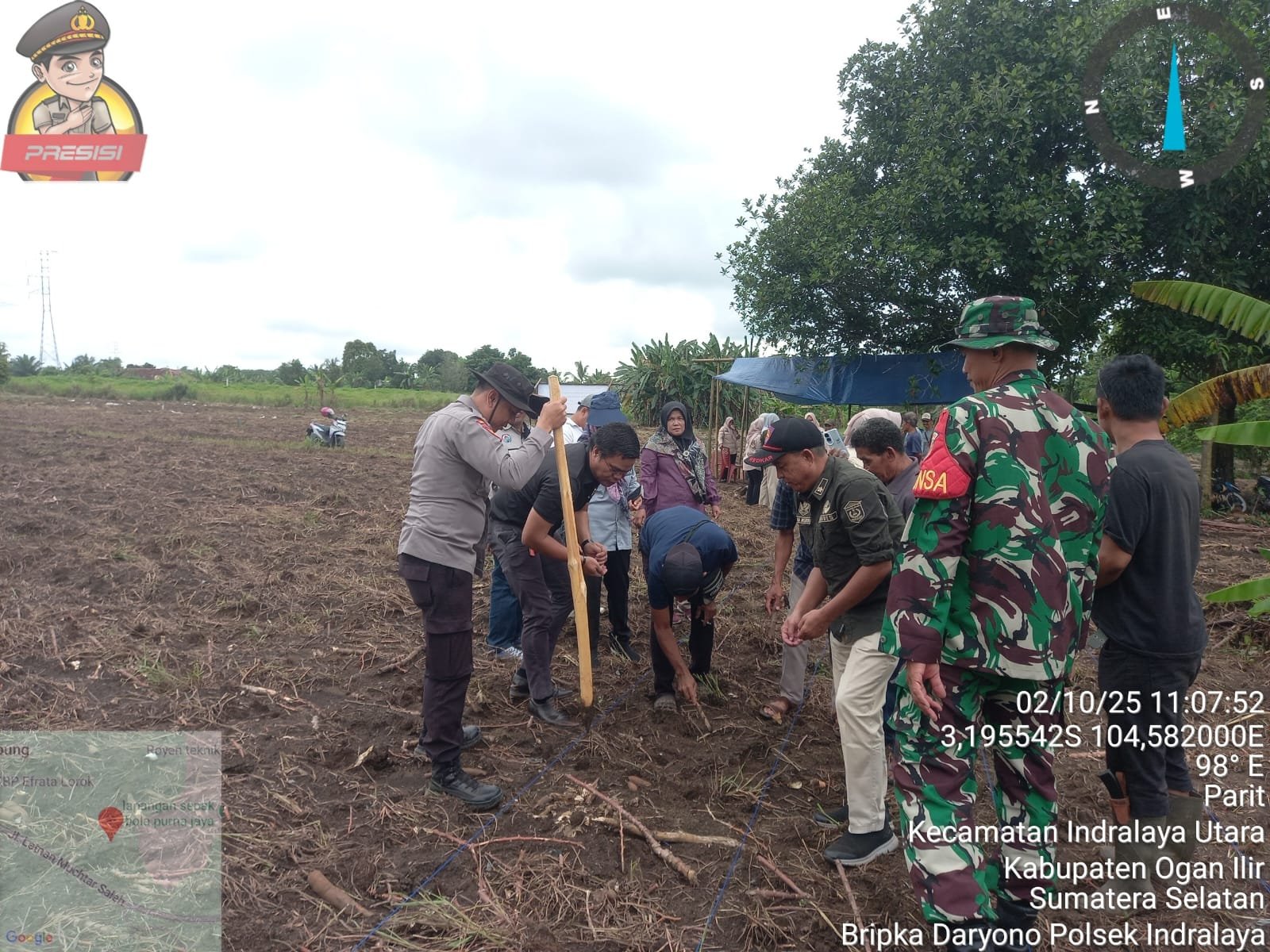 Ogan Ilir – Polsek Indralaya Polres Ogan Ilir turut serta mengawal kegiatan Program Ketahanan Pangan melalui penanaman jagung pipil yang dilaksanakan di lahan seluas 1 hektar di Dusun III Desa Parit, Kecamatan Indralaya Utara, Kabupaten Ogan Ilir, Kamis (02/10/2025).