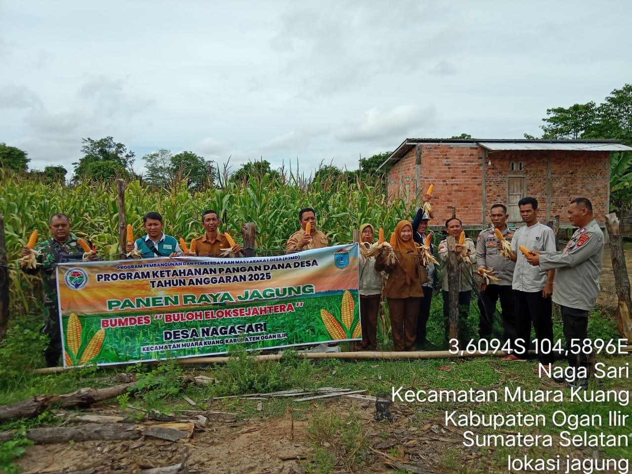 Ogan Ilir – Polsek Muara Kuang Polres Ogan Ilir bersama Pemerintah Desa Nagasari melaksanakan kegiatan Panen Jagung Program Ketahanan Pangan di Desa Nagasari, Kecamatan Muara Kuang, Kabupaten Ogan Ilir, pada Selasa (18/11/2025) sekitar pukul 16.30 WIB.
