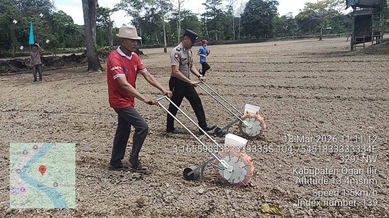 Ogan Ilir — Komitmen mendukung program ketahanan pangan nasional terus ditunjukkan Polsek Pemulutan. Bersama pemerintah desa dan kelompok tani, jajaran kepolisian turun langsung melaksanakan penanaman jagung pipil kuartal I di Desa Ulak Kembahang I, Kecamatan Pemulutan Barat, Rabu (16/3/2026).