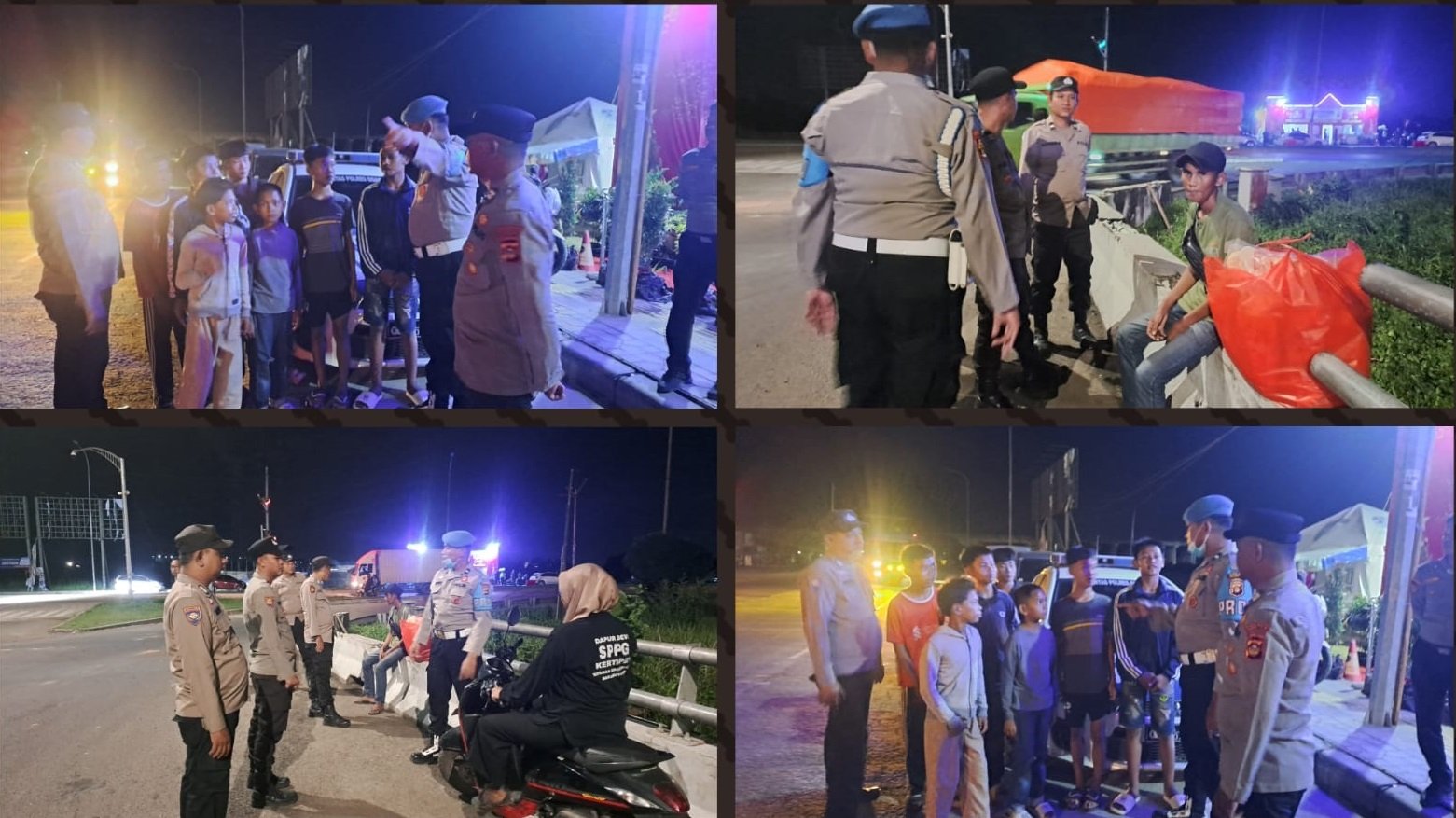Dalam kegiatan tersebut, personel melakukan pengecekan kesiapsiagaan Pos Pam, monitoring situasi dan pengaturan arus lalu lintas di sekitar pintu tol guna mencegah kemacetan serta potensi kecelakaan. Selain itu, petugas juga menyampaikan imbauan secara humanis kepada masyarakat agar mengurangi aktivitas di malam hari demi menjaga keselamatan dan ketertiban bersama.