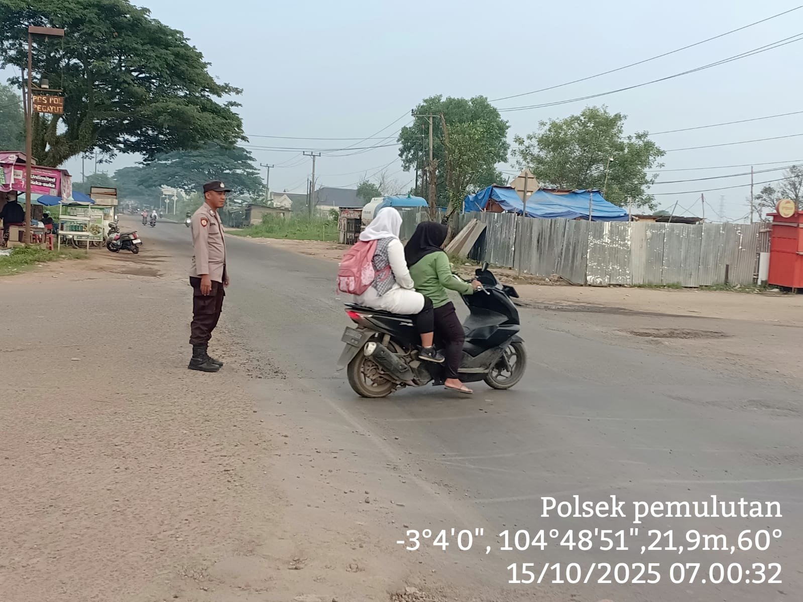Ogan Ilir, 15 Oktober 2025 Dalam rangka memberikan rasa aman serta menjaga kelancaran arus lalu lintas di pagi hari, personel Polsek Pemulutan melaksanakan kegiatan Strong Point di wilayah hukumnya pada Rabu (15/10/2025) sekira pukul 07.00 WIB.