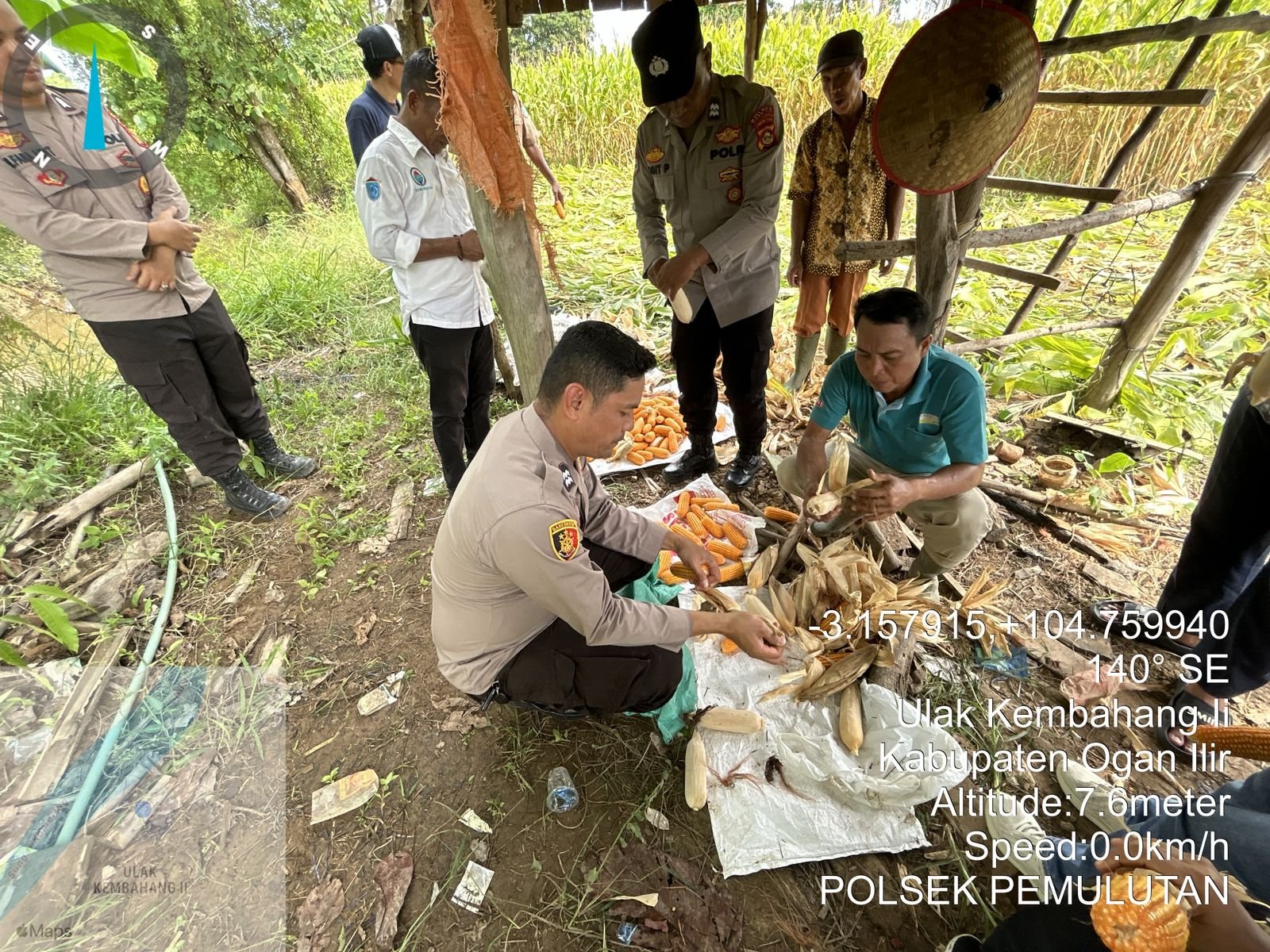 Ogan Ilir – Dalam upaya mendukung program pemerintah di bidang ketahanan pangan, Polsek Pemulutan Polres Ogan Ilir bersama kelompok tani melaksanakan kegiatan panen jagung di Desa Ulak Kembahang II, Kecamatan Pemulutan Barat, Kabupaten Ogan Ilir.