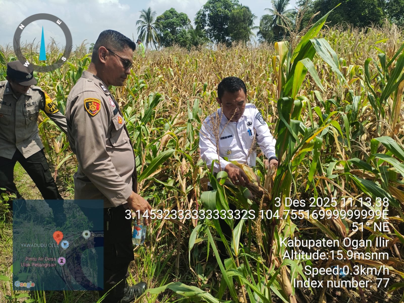 Ogan Ilir-, Polsek Pemulutan bersama unsur pemerintahan Kecamatan Pemulutan Barat dan kelompok tani setempat melaksanakan kegiatan panen jagung dalam rangka Program Ketahanan Pangan Pemerintah di Desa Ulak Petangisan, Kecamatan Pemulutan Barat, Kabupaten Ogan Ilir, pada Rabu (03/12/2025) sekira pukul 10.30 WIB.