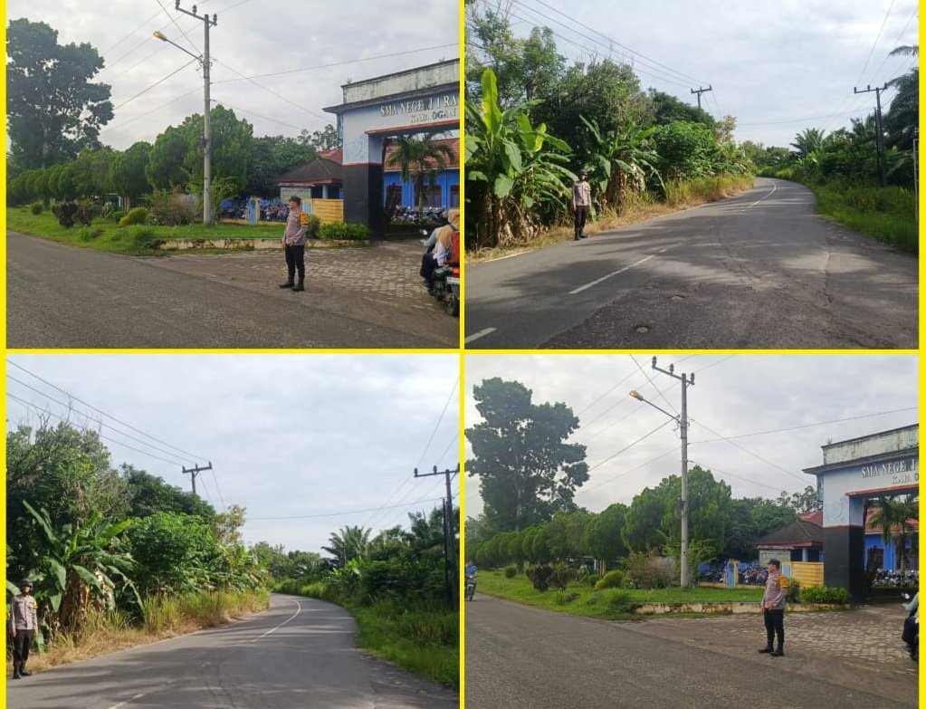 Ogan Ilir – Dalam rangka menjamin keselamatan pelajar dan masyarakat pengguna jalan, Polsek Rantau Alai melaksanakan kegiatan strong point dan pengaturan lalu lintas pada Kamis (16/04/2026) pagi di wilayah Kecamatan Rantau Alai.