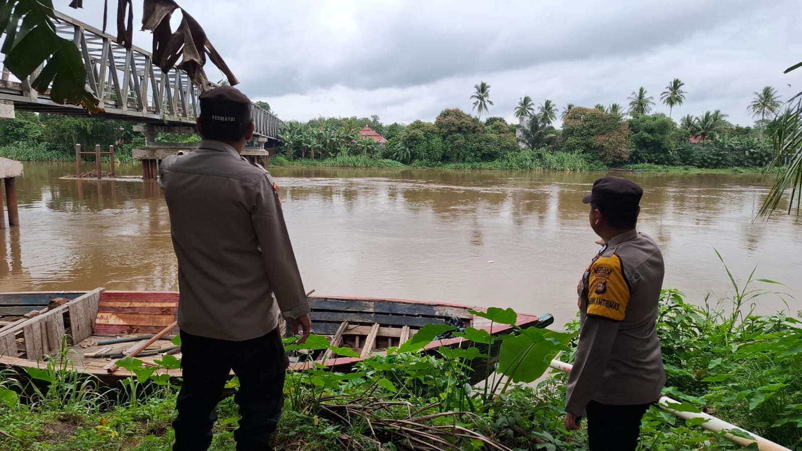 Polsek Rantau Alai Lakukan Pengecekan Debit dan Arus Sungai Ogan Antisipasi Banjir