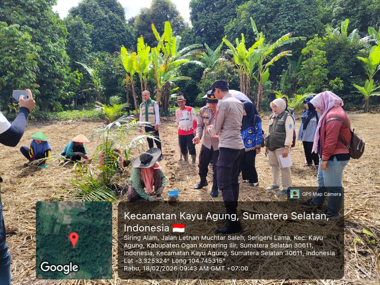 Ogan Ilir – Dalam rangka mendukung Program Ketahanan Pangan Nasional, jajaran Polsek Tanjung Raja bersama Pemerintah Desa Tanjung Agas melaksanakan kegiatan penanaman bibit jagung di Dusun I RT 01 Desa Tanjung Agas, Kecamatan Tanjung Raja, Kabupaten Ogan Ilir, Rabu (18/02/2026).