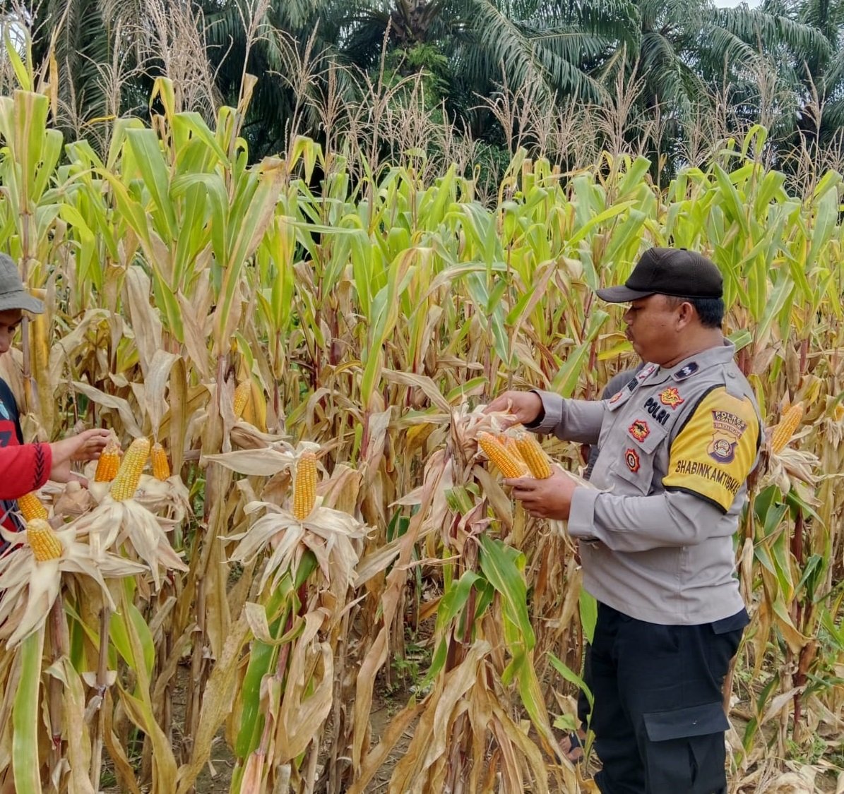 OGAN ILIR — Dalam rangka mendukung Program Ketahanan Pangan Pemerintah Republik Indonesia, Polsek Tanjung Raja bersama Pemerintah Desa Ulak Kerbau Lama melaksanakan kegiatan panen jagung pipil di Desa Ulak Kerbau Lama, Kecamatan Tanjung Raja, Kabupaten Ogan Ilir.
