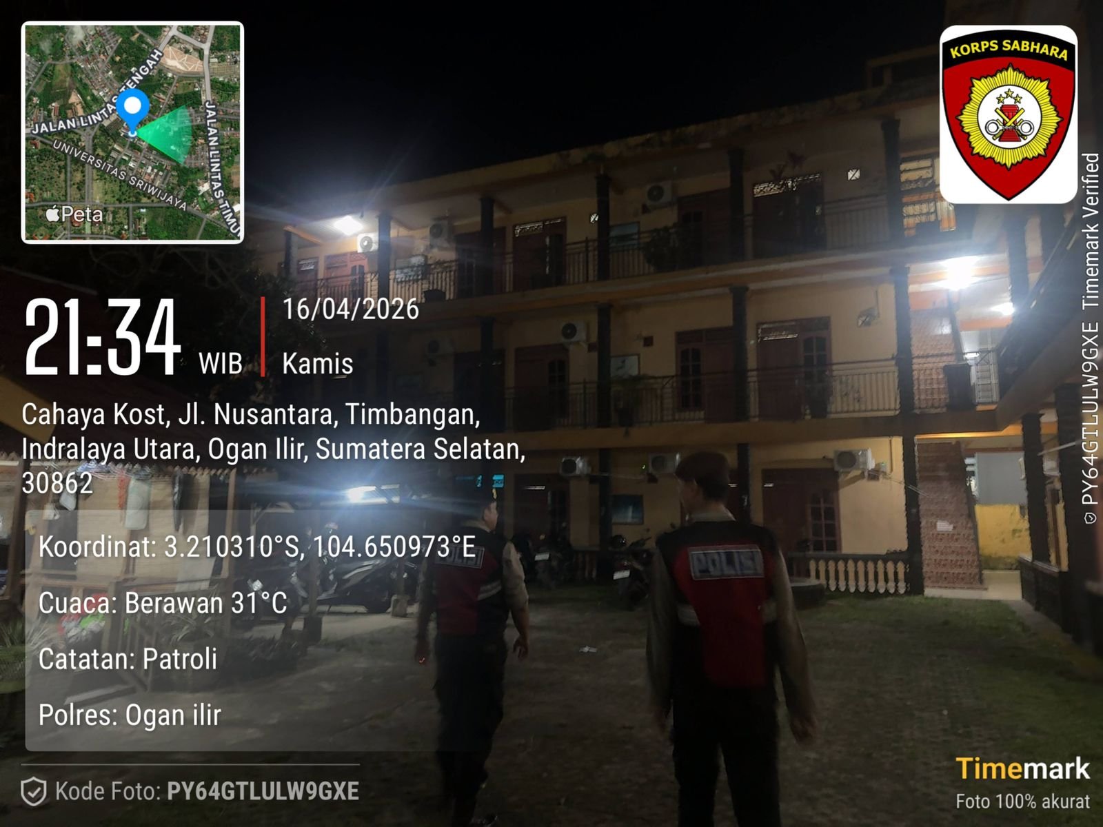 Ogan Ilir – Personel Satuan Samapta Polres Ogan Ilir melaksanakan kegiatan Patroli Perintis Presisi pada Kamis (16/04/2026) malam sebagai langkah antisipasi gangguan kamtibmas, khususnya pencegahan aksi pencurian kendaraan roda dua (R2) di kawasan kos-kosan mahasiswa.