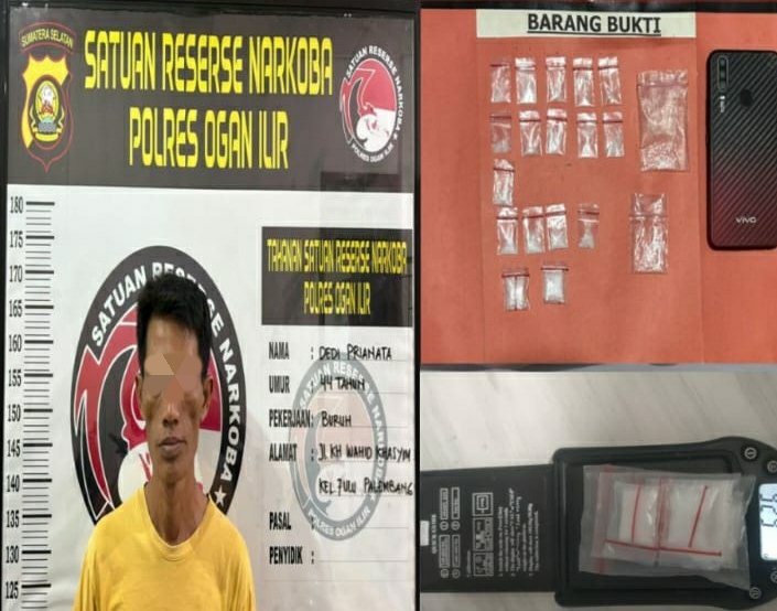 Ogan Ilir-, Satuan Reserse Narkoba Polres Ogan Ilir di bawah pimpinan Kasat Narkoba IPTU A. Surya Atmaja, S.H., kembali berhasil mengungkap kasus penyalahgunaan dan peredaran gelap narkotika di wilayah hukumnya. Anggota Unit 2 Satres Narkoba mengamankan seorang pria berinisial D P di Desa Tanjung Pering, Kecamatan Indralaya Utara, Kabupaten Ogan Ilir, pada Sabtu (15/11/2025) sekitar pukul 02.15 WIB.
