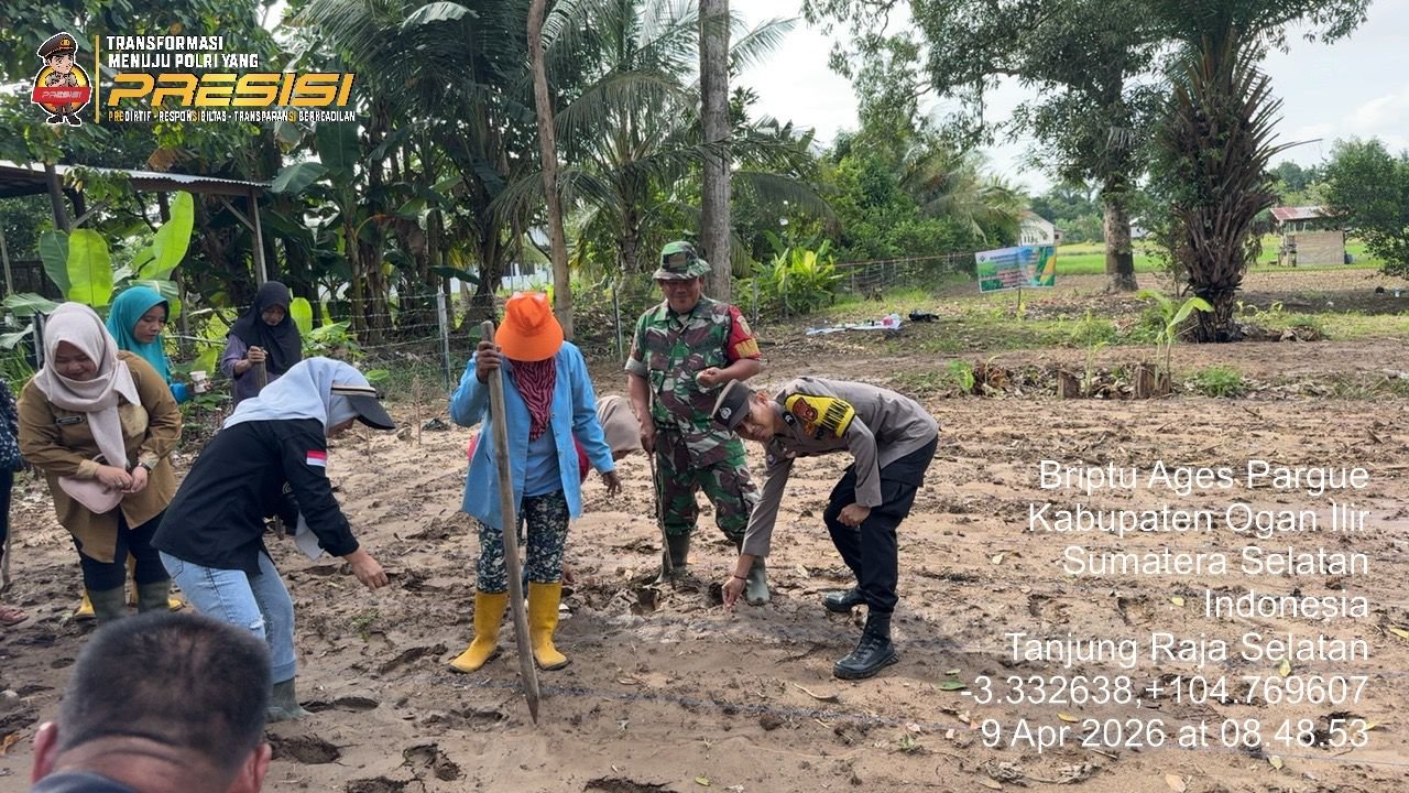 Ogan Ilir — Polsek Tanjung Raja bersama Pemerintah Desa dan masyarakat melaksanakan kegiatan penanaman bibit jagung sebagai bentuk dukungan terhadap program ketahanan pangan nasional. Kegiatan tersebut berlangsung pada Kamis (9/4/2026) sekitar pukul 08.30 WIB di Dusun I Desa Tanjung Raja Selatan, Kecamatan Tanjung Raja.