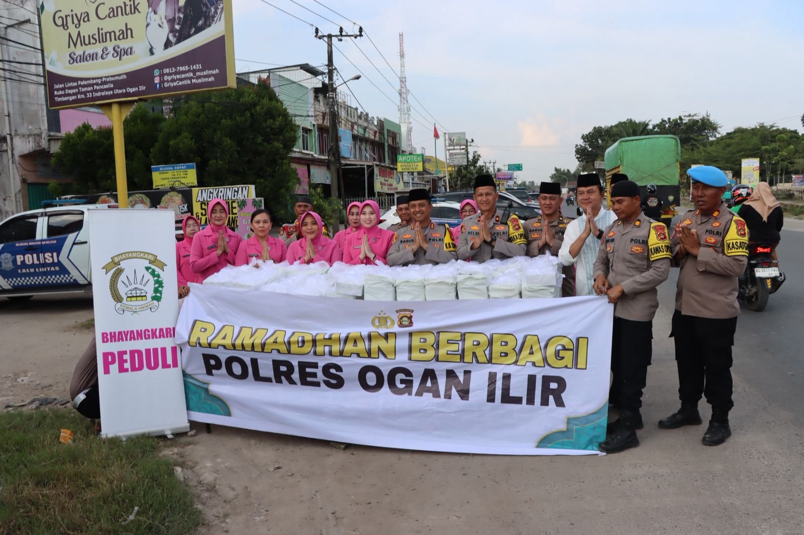 Dalam kegiatan tersebut, Polres Ogan Ilir bersama Bhayangkari membagikan sekitar 300 paket takjil kepada para pengguna jalan dan masyarakat yang melintas di lokasi kegiatan.